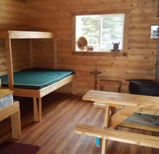 Located on a remote lake in Central BC, our basecamp consists of our main lodge, guest cabins, a shower cabin, and multiple tool sheds. Comfortable beds/bunks await you in your cabin, along with a woodstove and lots of room to dry your gear. With a woodstove in our cedar lined shower cabin, enjoy a hot shower any time of year. Meals will be served family style in our main lodge, where we have a full kitchen set up and dining area.